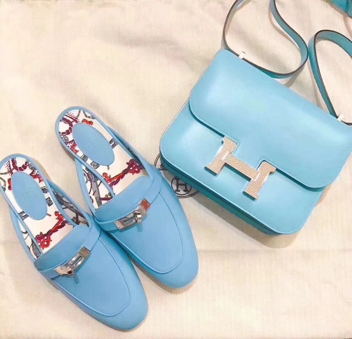 bag and shoes from hermes.light blue is so nice that i fear show it out!